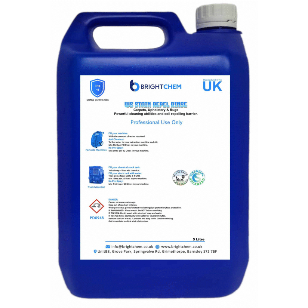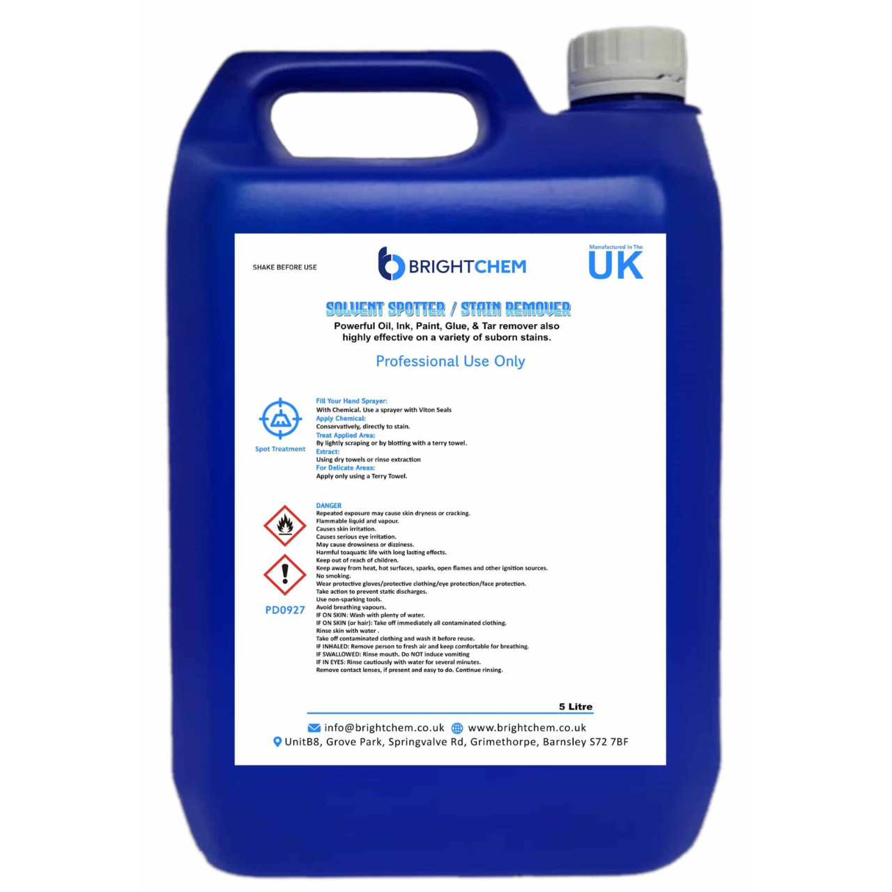 Bright Chem Ready to use formula provides instant results on the most difficult to shift residues and stains! Simply spray on to a towel, agitate lightly and the stain is gone. Works on Paint, Tar, Ink, Oil, Glue and Red and yellow stains! Can be used as a pre treatment, we recommend rinsing back out again. DOWNLOAD The MSDS SHEET
