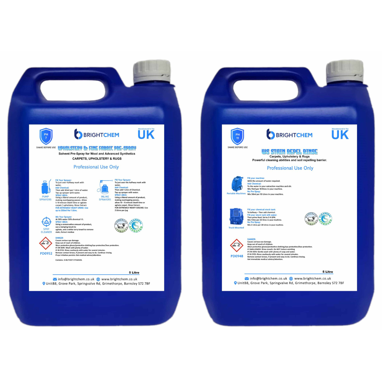 Fine Fabrics and Upholstery that works amazing on greasy carpets too! Simply pre-treat or pre-spot areas using Woolsafe Upholstery & Fine fabric Pre-Spray and rinse extract with WoolSafe WS Upholstery & Fine Fabric Pre-Spray is made for upholstery & carpet cleaning . This citrus solvent product cuts grease fast yet remains perfectly safe at PH 7.5. Upholstery and rug cleaning where you need a heavy degreaser Works amazing on fibres that are reactive to high alkaline products. Fast dwell times and can be paired with WS Stain Repel Rinse to increase your cleaning power. Extremely effective on carbon, grease and oil based stains. WS Upholstery & Fine Fabric Pre-Spray works extremely effectively on thick oils and greases . Free rinsing without leaving any harmful residues. Application for use: Pump sprayers: Fill Your Sprayer just over the halfway mark with water, then add 60ml per 1 Litre of water. Extremely Heavy Soiling: 250ml per 1 Litre. Inline sprayers: Fill your Sprayer just over the halfway mark with water, then add 2 Litres of chemical. Fill sprayer with water. Spray area: Using a liberal amount of product, making overlapping passes. Allow 5 minutes Dwell time or Scrub Carpet / Upholstery. Rinse Extract. Spot cleaner: Mix your sprayer at 50% water 50% chemical. 1:1. Spray area using a conservative amount of product, use a tamping brush to agitate, and a white terry towel or cloth to remove stain. Extract residue. WS Stain Repel Rinse Cleans whilst helping to protect against re-soiling. WS Stain Repel Rinse carpet cleaning detergent is an advanced product leaves behind our stain protection after cleaning Perfect for residential cleaning Works alongside our WS Pre-spray. Ideal for protecting and maximising the lifetime of your customers carpets and upholstery. Direction for use: Portable: 15ml per 10L when using a Pre-spray 30ml per 10L When not using a Pre-spray Truck Mount 2-4GPH: 1L per 20L when using a Pre-spray 2L per 20l when not using a Pre-spray